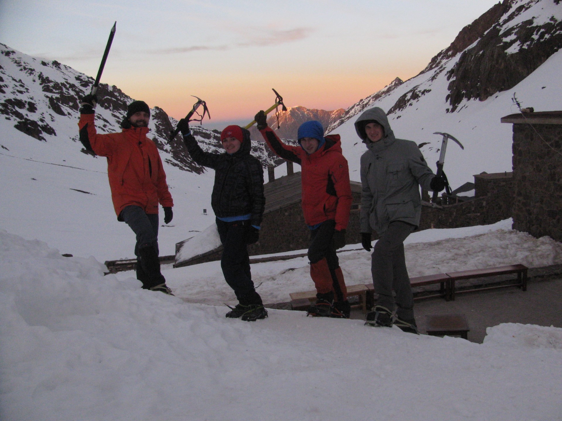 Приют Тубкаль оказался очень приличный и уютный. Нам повезло – интернациональные компании альпинистов активно праздновали НГ, а мы попивали фанту и думали о раннем выходе.