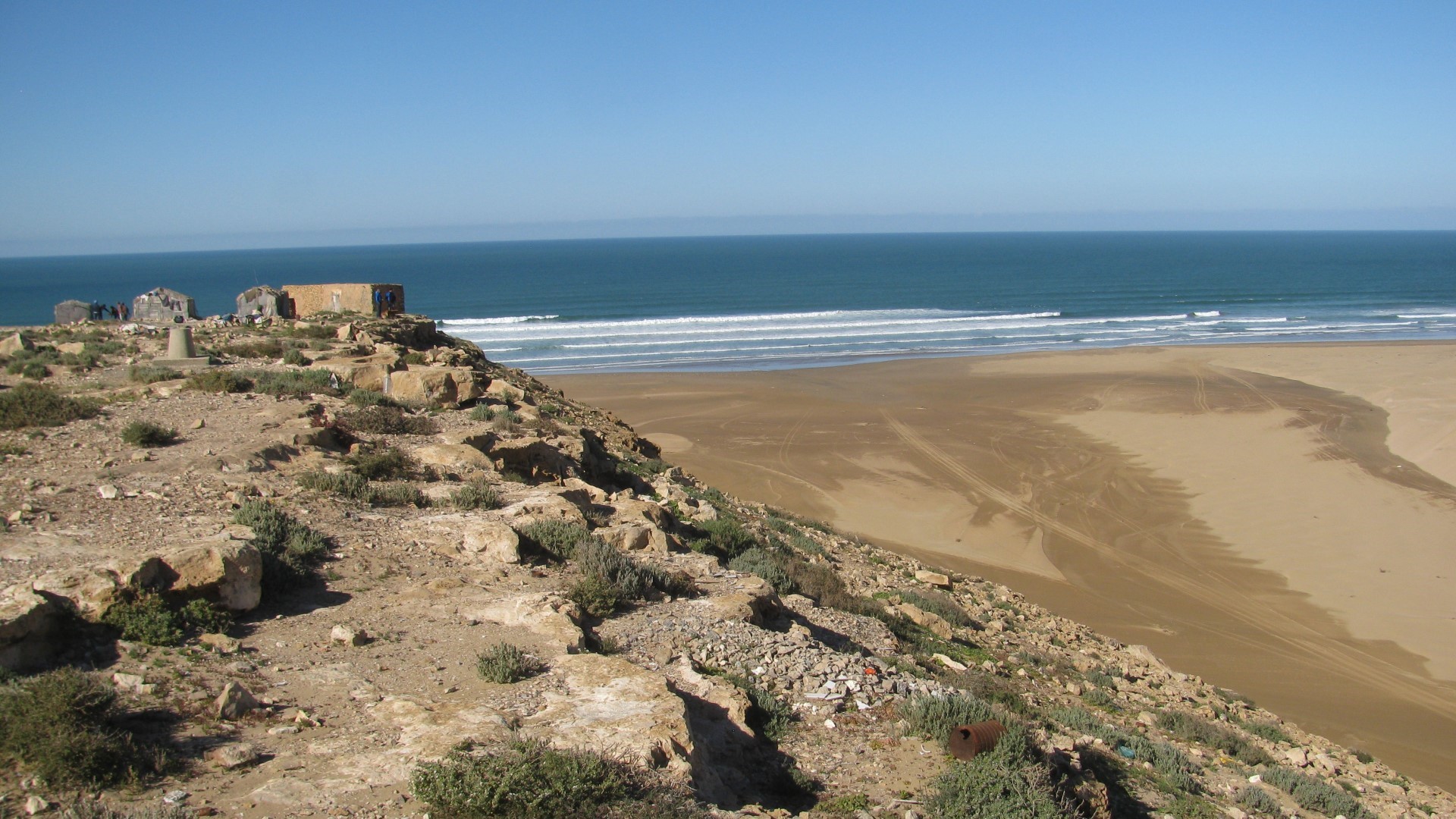 Переезжаем в город Тан-Тан. Сегодня по плану лагуна Нейла и город Тафрая, где находится памятник писателю и поэту, летчику Антуану де Сент-Экзюпери. По дороге можно увидеть заброшенный корабль севший на мель, остров старого парома, который тоже сел на мель. В Тан-Тане проверка документов, так как за этим городом начинается протекторат Марроко – Западная Сахара. Обед на берегу океана в месте, которое называется «Тan-Tan beach». За обедом решили, что ехать по асфальту дальше не интересно. Доганяем Д. Гозака, который едет в Лекзиру. По дороге заехали в город Тизнит, где делают все ювелирные изделия Марроко. Прикупили немного серебра J. К 16:00 добрались к Легзире. Общие километраж на авто – 250 км.
