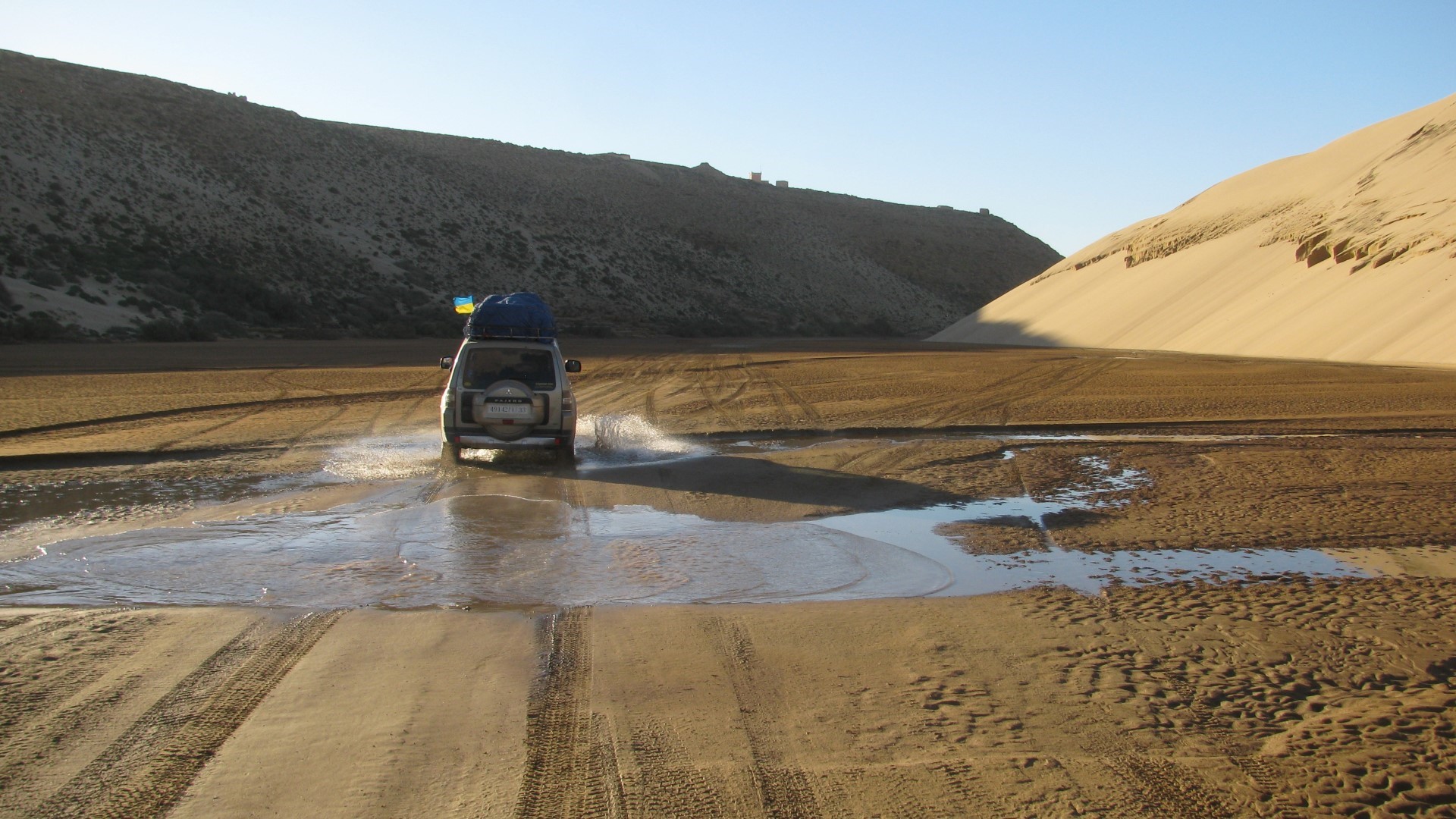У подножия форта широкое песчаное устье реки и бархны, где и ночуем. Вечером опять тестируем джипы на песчаных пляжах Атлантики. Общий километраж – 50 км
