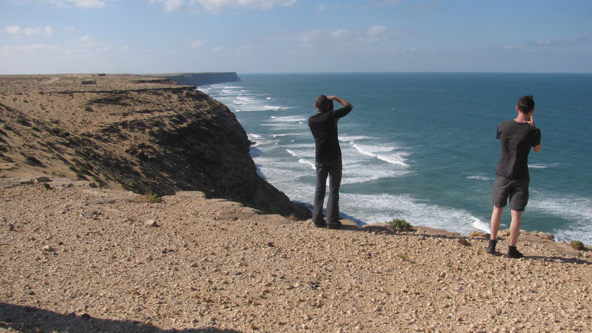 6 января день, когда дорога почти все время шла вдоль океана. Увидели десятки рыбацких хижин, сотни верблюдов и высокие скалистые берега океана. В конце дня, минуя барханы, приехали в Форт Tafrout. Форт построен в 2000 году. Очень крутое место, как для пустыни. Можно жить в палатках, а можно снять номер за 100 дирхам с человека и душем внутри. Здесь поселились в номерах, приняли душ. Вечером кальян и вино. Общий километраж – 50 км