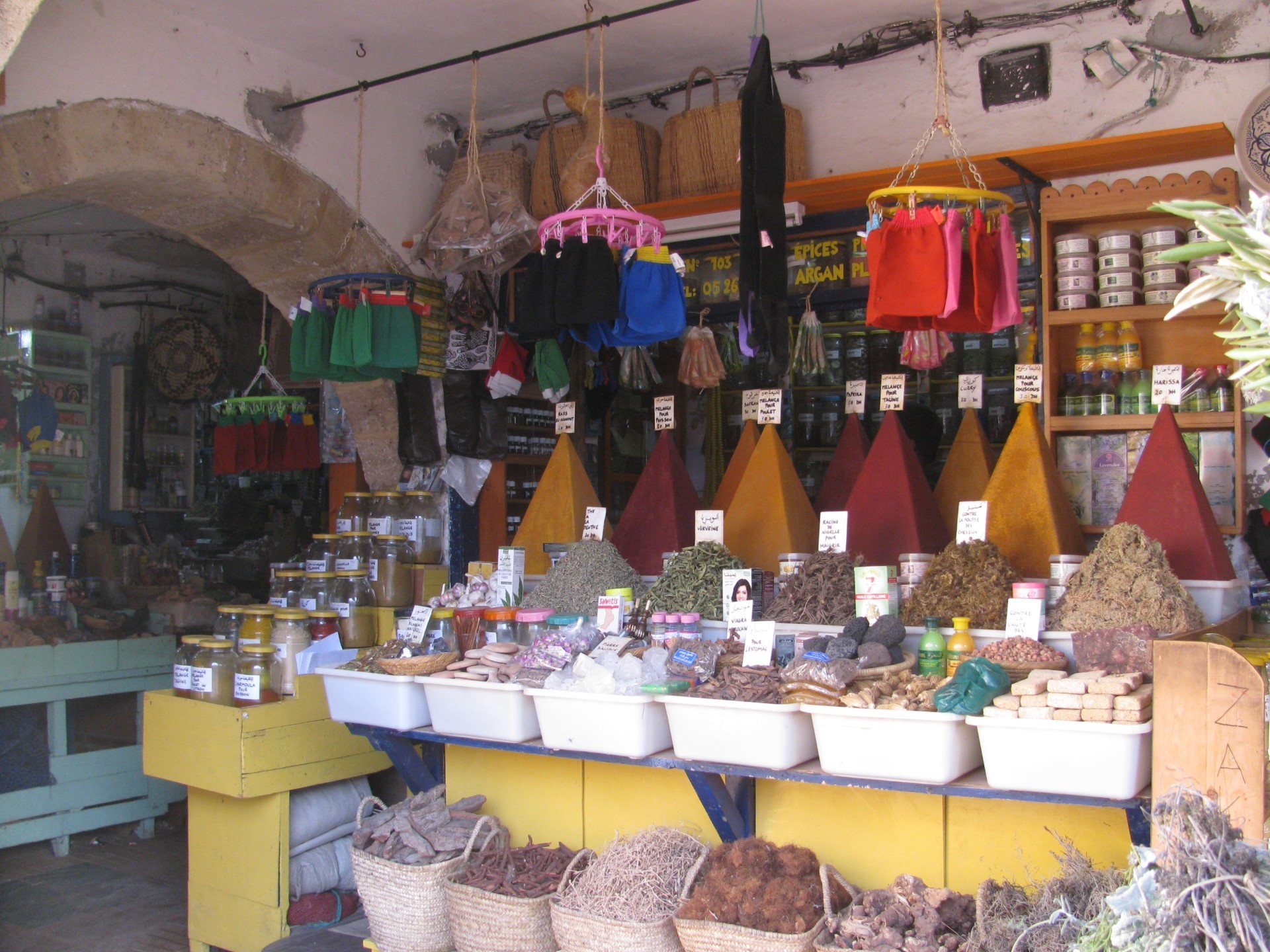 Стоимость жилья колеблется от 5 евро с человека до 20 в бюджетных отелях и хостелах. Приличные отели от 40 евро и выше. Основные блюда: таджин, кускус, рыба, лепешки и маслины. Покушать в центре Маракеша можно от 2 евро на завтра и 3 на обед, в малых городах дешевле. Кускус с овощами или мясом в среднем стоит 3 евро, таджин (тушеные овощи с мясом) – 3-5 евро с местным мятным чаем. Фреши от 1 евро. Одним блюдом мы всегда наедались, так как к нему подают неограниченно количество хлеба, аперитив в виде салата и маслин. Рыбная кухня в рыбных городах стоит от 3 евро до 5 евро за микс из сардин, кальмаров и креветок. За блюдо из рыбы тоже 5-7 евро. В общем дешево и сытно не по-европейски ). Марокко- страна мандарин и маслин, здесь этого добра много и очень дешево. Я съел за поездку больше мандарин, чем за год в Одессе ))…