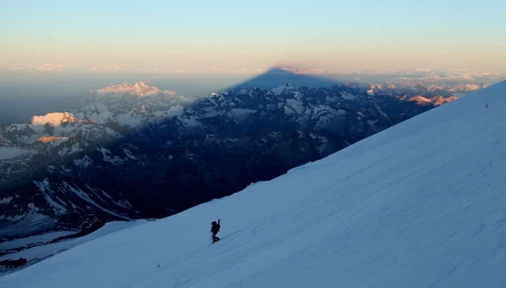 Дима сразу предостерегает будущих покорителей Эльбруса: нельзя относиться к горе легкомысленно. То, что она легкая, – один из самых опасных мифов. Технических сложностей здесь действительно нет (Эльбрус выглядит как пологий холм: ни тебе скал, ни перекатов), но их восполняет погода. Она меняется моментально и, обычно, в худшую сторону. Например, после 2-3 часов дня практически всегда гора укутана облаками.