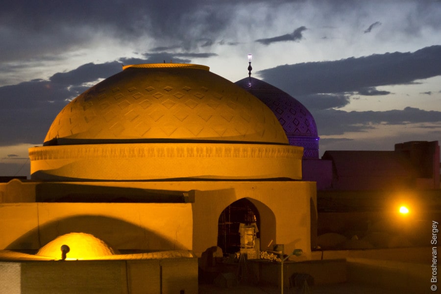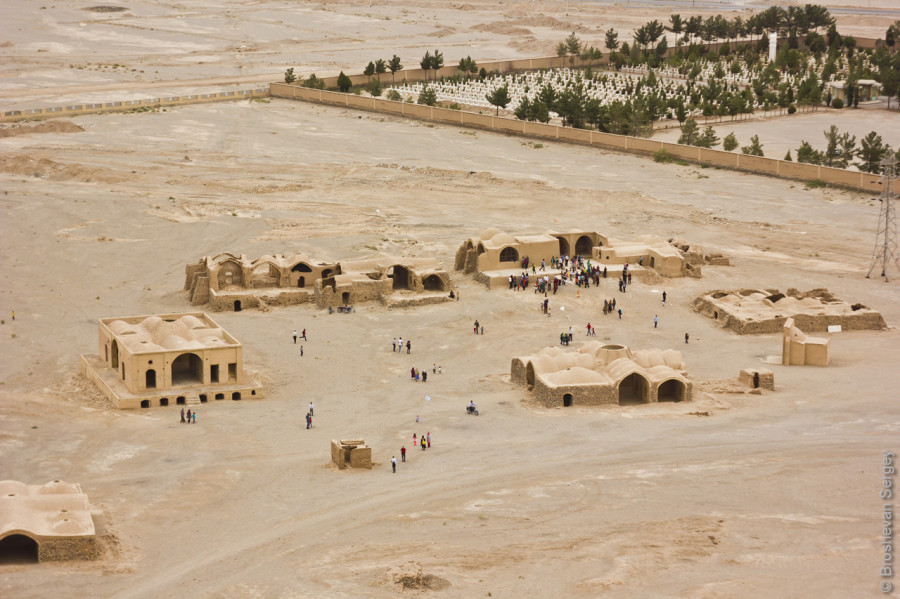 Отсутствие народа, конечно, немаловажный фактор в полном погружении в окружающую действительность: идешь, и чувствуешь – вот здесь люди жили, вот здесь готовили еду, вот по этим улочкам ходили, здесь молились. Нет ни капли восстановленных мест, все настоящее, ну и все понемногу рассыпается (глина все же, не бетон). Зеленые сады внизу, горы на горизонте, добавляли красочности месту. Это, на мой взгляд, одна из самых интересных достопримечательностей-развалин, которую я видел (даже пафосный Персеполь не идет с Каранаком в сравнение). Вдоволь погуляв по крышам, улочкам и комнаткам (некоторые из которых вполне пригодны для жизни), а также по садам, мы едем обратно в Язд. Очень насыщенный день!