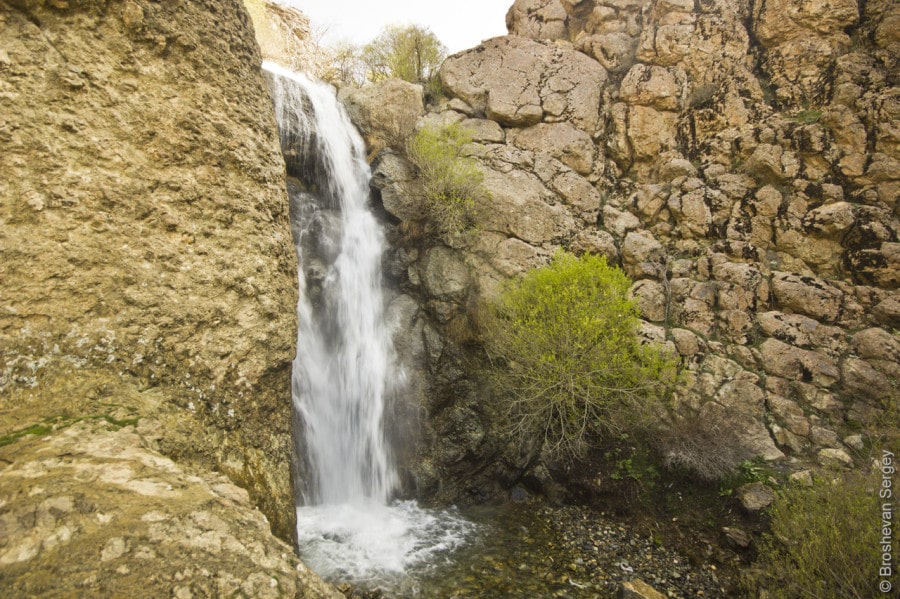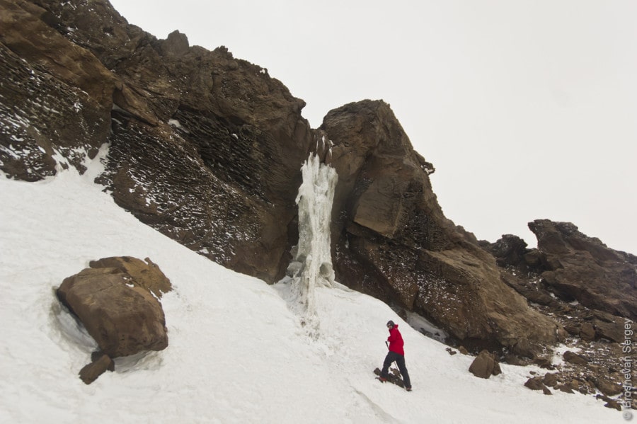 Водопад особо не примечательный – такая себе пятиметровая замерзшая сосулька.
