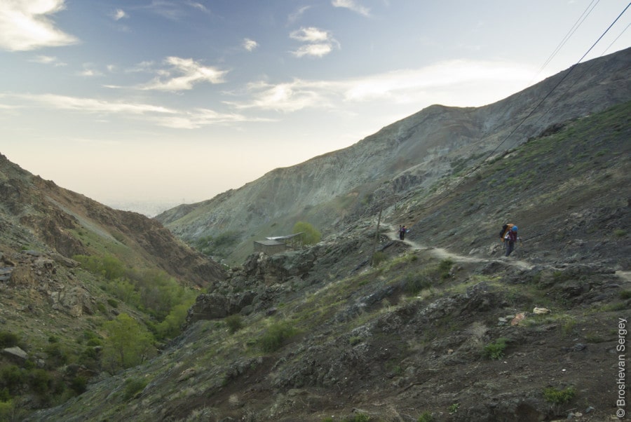 Спустившись в приют, видим нашего ословода (или ословеда?) который уверяет нас спускаться сейчас, а не завтра утром (Тегеран, гостиница, душ, девочки, пиво…), однако мы не ведемся, и ему таки приходится на следующий день утром с ослами подниматься еще раз вверх за нашими рюкзаками. И вот утром 7го дня мы спускаемся на 3050м, забираем наши рюкзаки (долго прождав неспешного иранского ословода), и едем в Тегеран. А вечером того же дня мы уже садимся на ночной поезд до Язда.