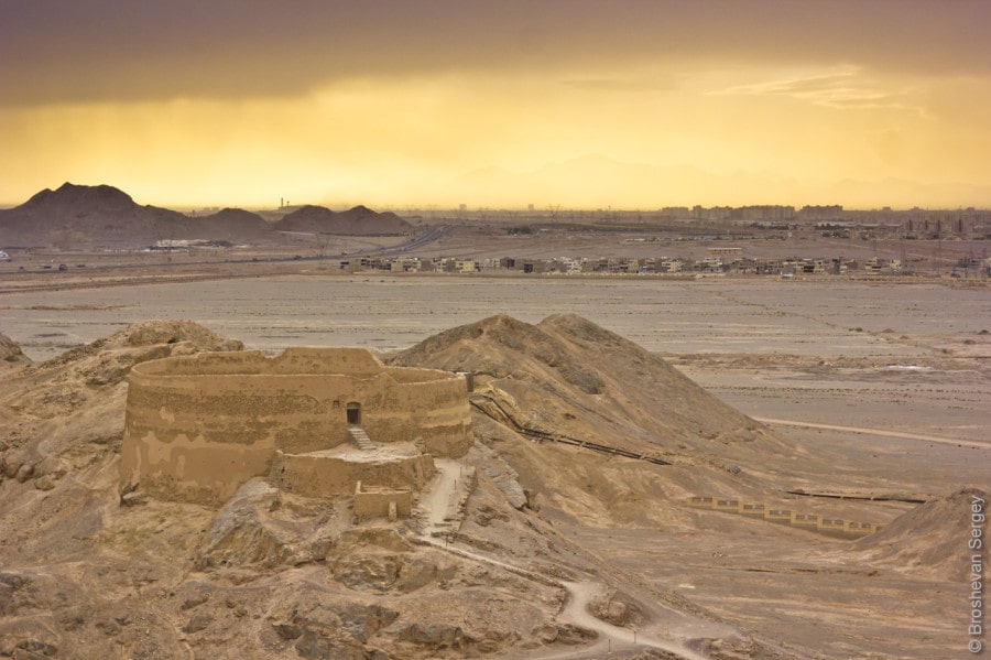 Ну а под вечер поехали на Зороастрийские Башни молчания. К этому времени погода уже начала сердиться и на одну из Башен мы поднимались уже под нависающими пурпурными тучами и лучами ярко-желтого солнца, что очень скрасило фотографии.