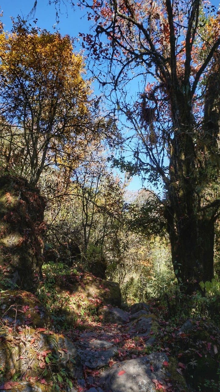 День 4. Спали до 8:00. Позавтракали. Нашли портеров. Вышли на маршрут в 11:00. Дорога через села. Идем через буйные джунгли. Впечатлили большие заросли бамбука и гигантские деревья.