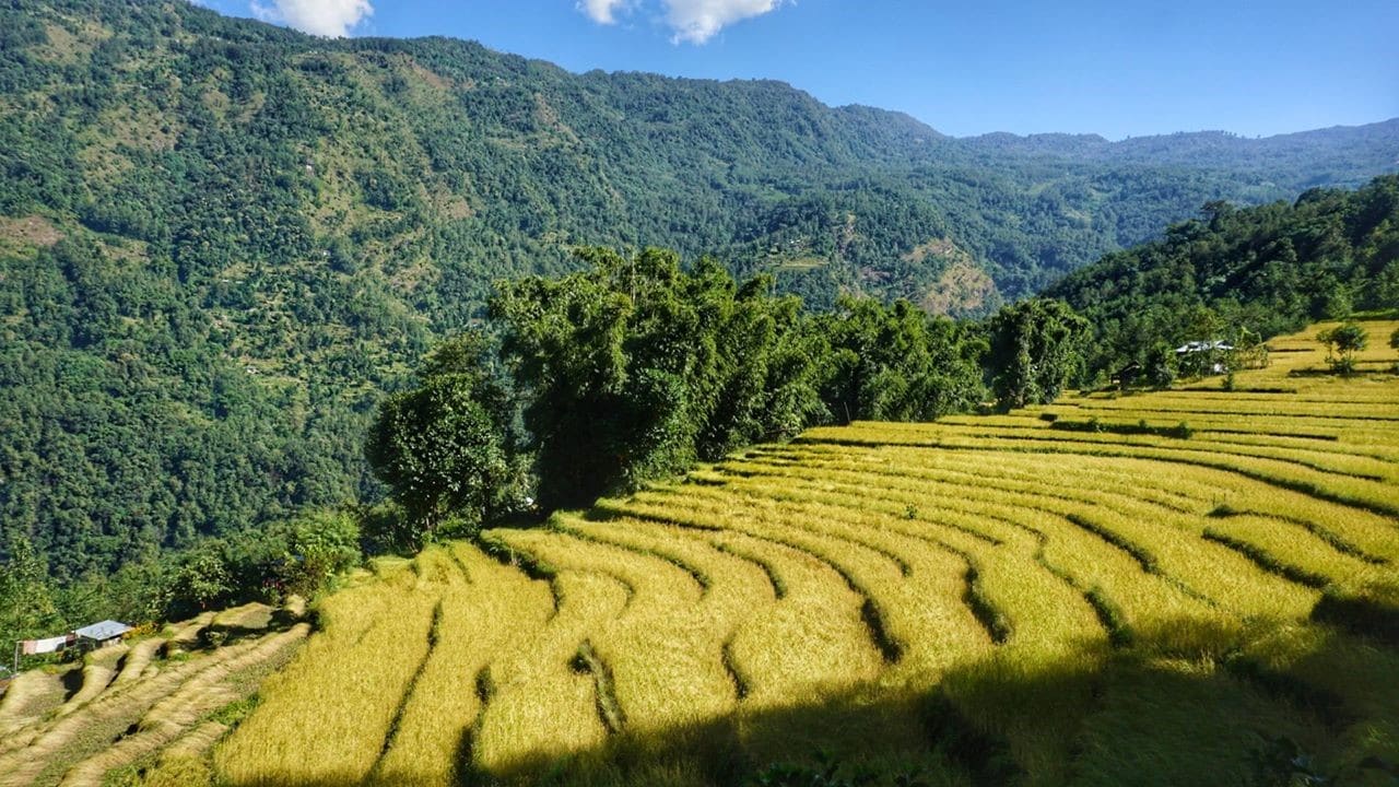 Местные жители занимаются выращиванием кардамона. Поэтому здесь мы не увидели больших рисовых терасс, как на треках вокруг Дхаулагири и Аннапурны. Кардамон как раз дозревает и уборка его будет где-то в декабре месяце.