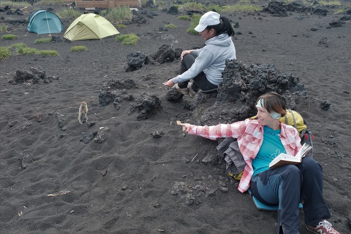 Далее свободное время, кто-то отправился отдыхать и читать, кто-то гулять по округе, кто-то прикармливать и фотографировать еврашек, а мы полезли на все окружающие шлаковые сопки! Вернулись полные радости и с через край высыпающимся из кроссовок шлаком.