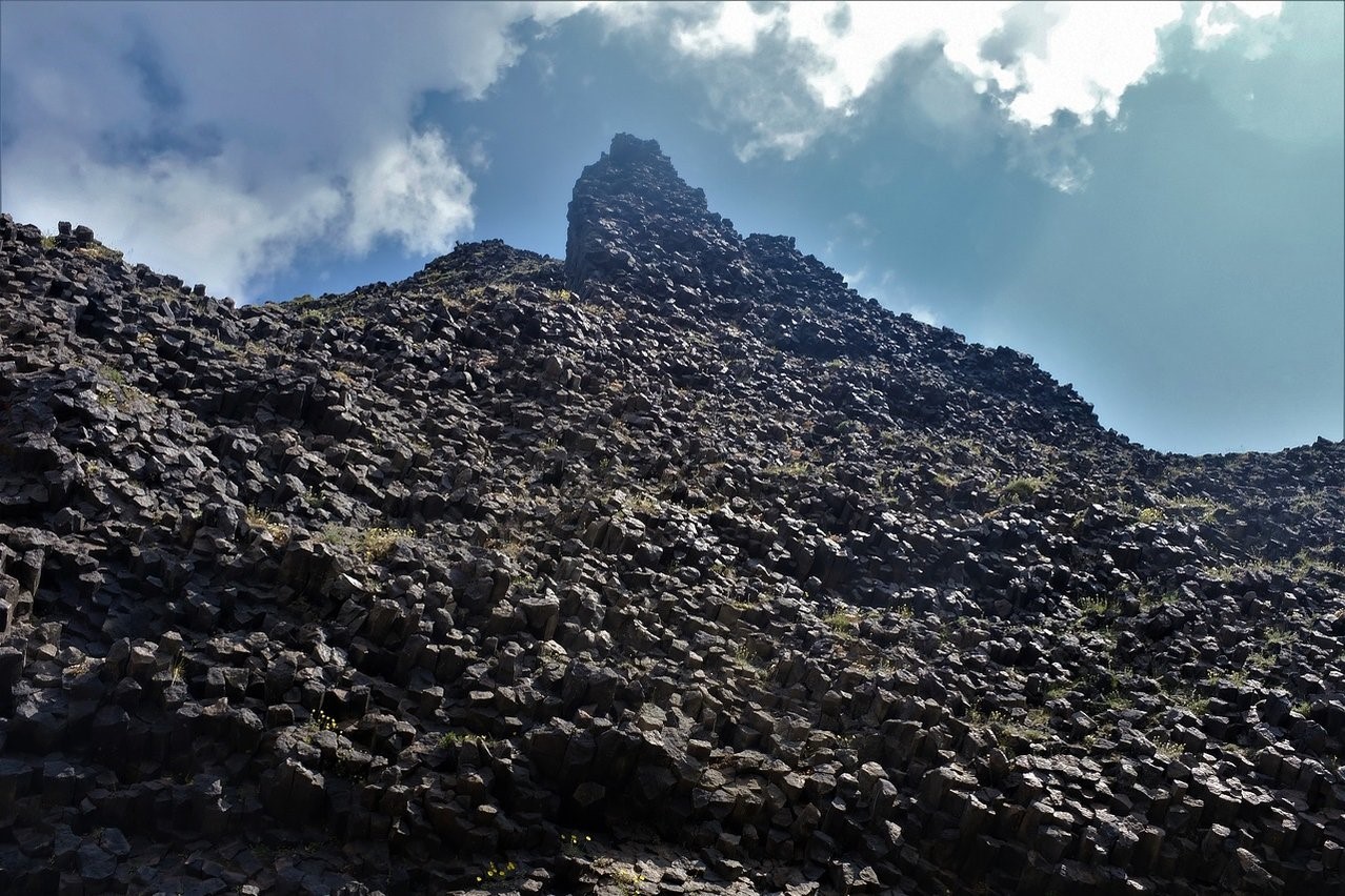 Тем временем приготовили обед и сдали дежурство. Наступило свободное время, которое мы потратили на 2 радиалки: Поход к горе “Поленица” и к кратеру “Юпитер”. Поленица охраняется ЮНЕСКО и выделяется тем, что сложена из отдельных базальтовых столбов пятиугольного сечения. Внизу из “поленьев” туристами выложены свои имена или названия городов. Забежали наверх и полюбовались отличным видом.