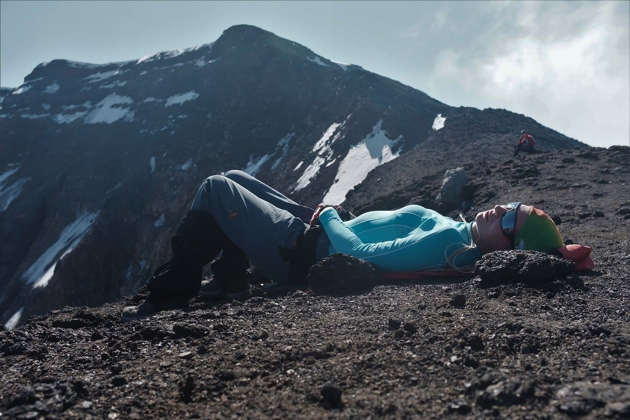 Основательно навалявшись на вершине, нафотографировавшись и налюбовавшись кратером (ну и побросав в него камни сверху, конечно) мы начали спуск. На обратном пути немного “потерялись” (пока на привале готовили обед, гиды отправились забирать оставленные несколько рюкзаков, ну и классически ушли искать их в другую сторону).