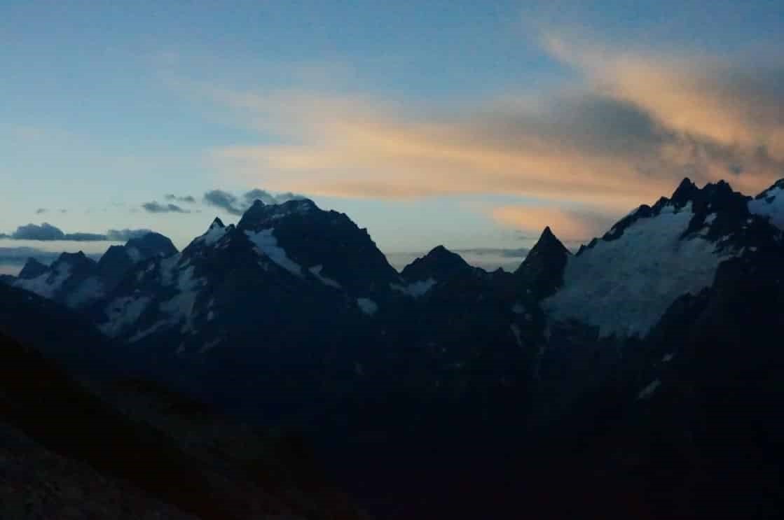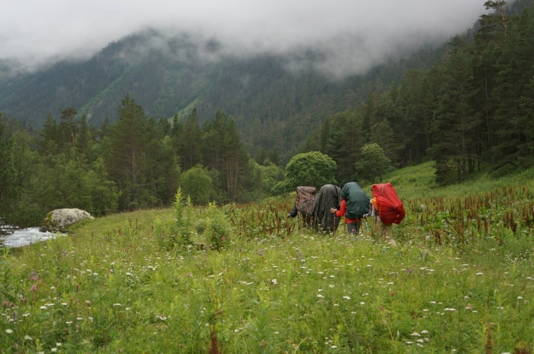 Данный трек выделяется из найденных нами в сети, сочетанием высот около 3 500, наличием перевала 1А и вершины 1Б. После Эльбруса с севера, с востока, а так же Казбека с севера в предыдущие 2-3 года, такой трек выглядел «плавным сбрасыванием оборотов», однако, это оказалось не совсем так, как мы ожидали. Было неожиданно трудно. Возможно из-за возраста (слегка за 50), возможно из-за довольно резкого, почти без пологих участков, набора высоты начиная со 2-го дня активного маршрута, а может быть, из-за «мокрой» ночёвки «в поле» после первого ходового дня, закончившегося под дождём средней интенсивности.