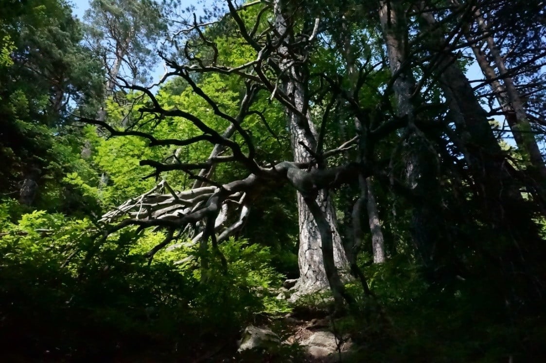 Ну, или, если у Вас другие ассоциативные ряды – Эльфийский Лес из «Властелина Колец». Чем ниже спускаемся, тем выше и мощнее деревья, жаль, что нередко встречаются больные и упавшие, но это естественный цикл заповедного леса.