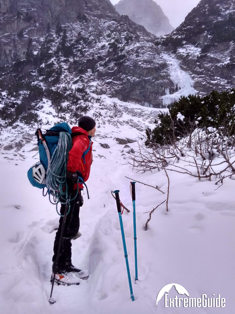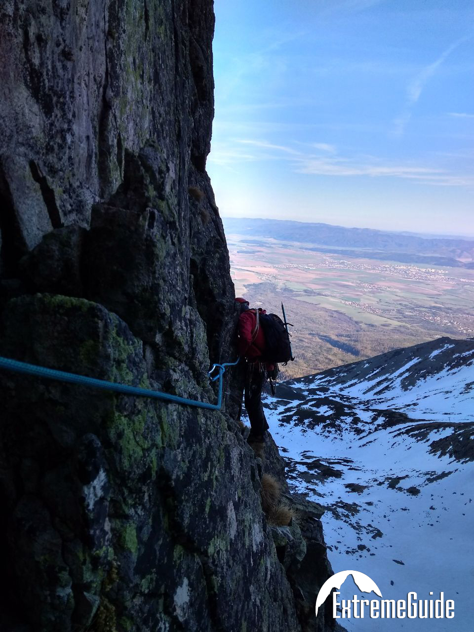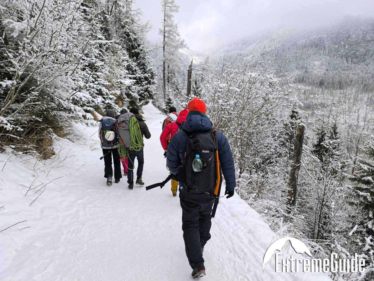 In the morning we take the cable car to the Skalnate pleso station, from there it’s an hour’s walk to the start of the route. The route’s difficulty is 2A (PD-). A good route for practicing your snow skills. Climbing a steep snow couloir, reaching the ridge, moving to the top along the rocky ridge.