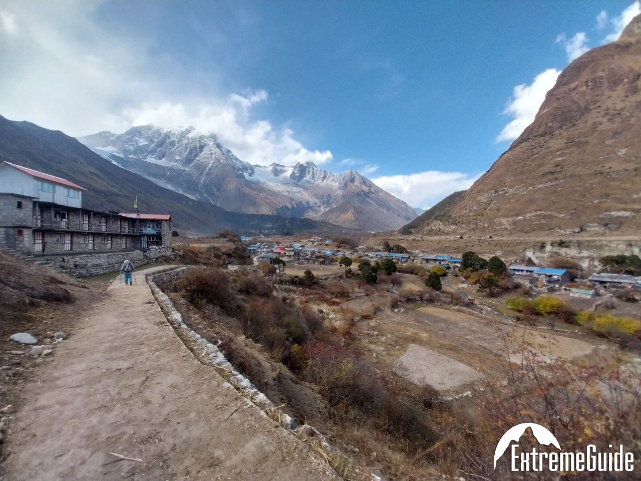 Kathmandu – Arugat Bazaar – Soti Khola (710 m) – Macha Khola (900 m) – Jagat (1410 m) – Deng (1800 m) – Gap (2100 m) – Lo (3180 m) – Samagaon (3530 m) – Dharamsala (4480 m) – Larki La (pass 5100 m) – Tanbuche (4450 m) – Karache (2700 m) – Darapani (1920 m) – Sayanje – Kathmandu
