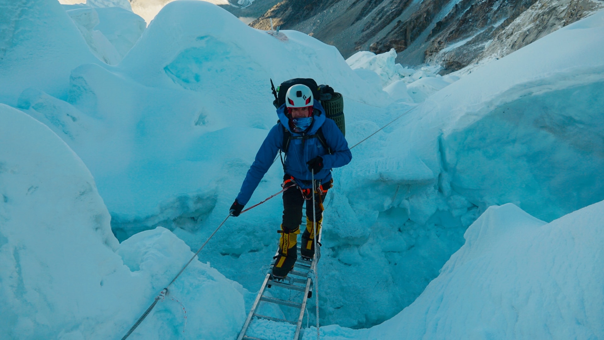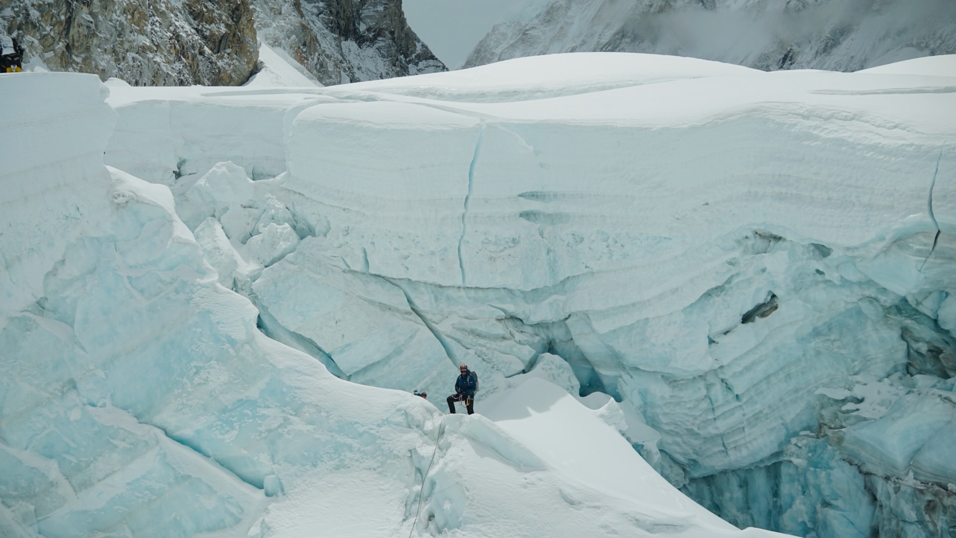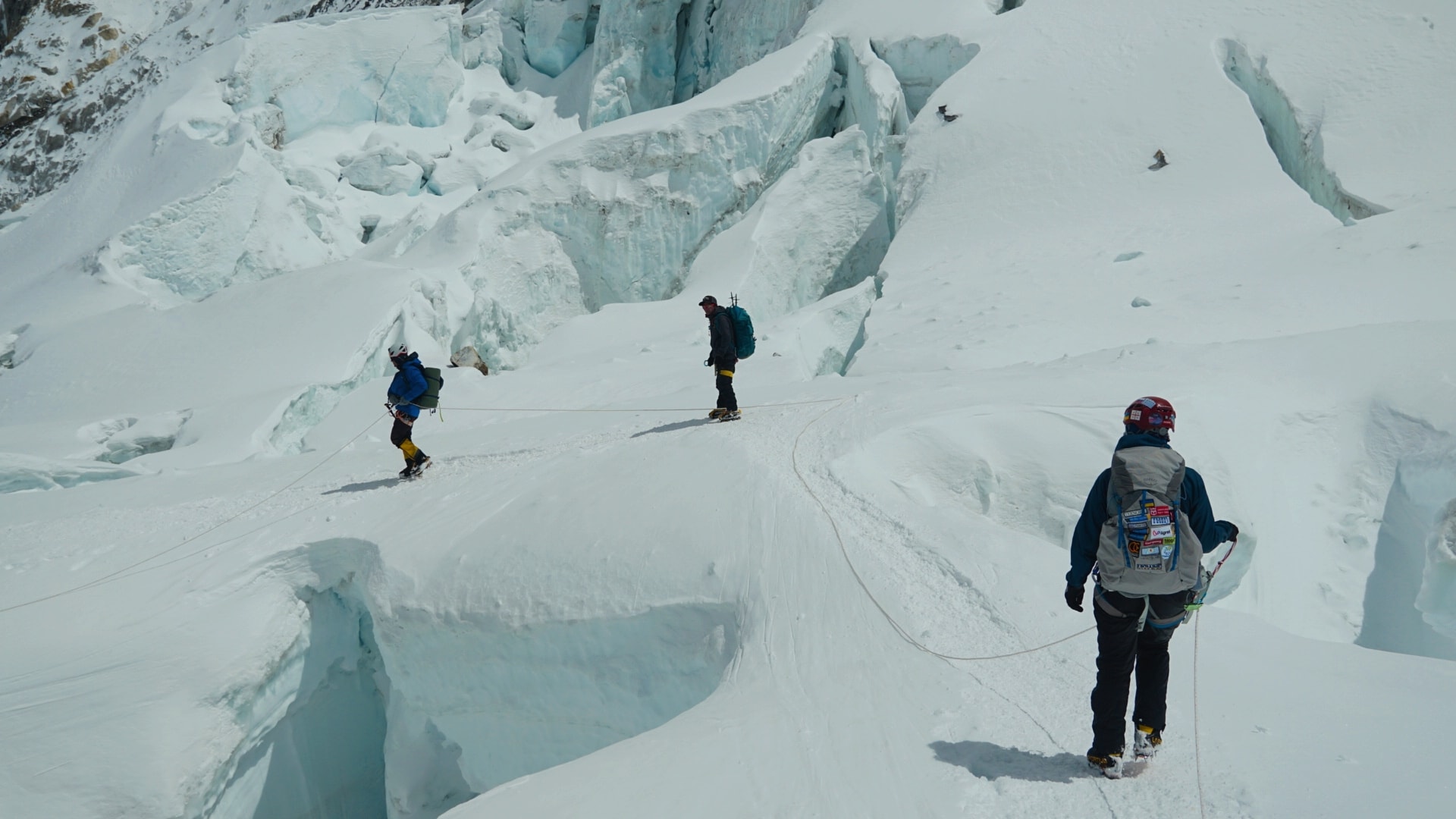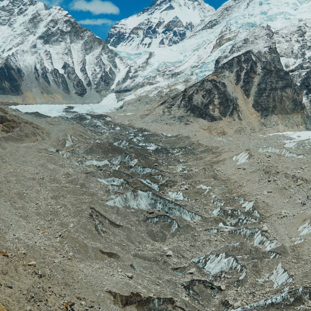 Після двох днів відпочинку ми вийшли акліматизацію. Дорога до Лхотце йде через льодопад Кхумбу та “долину мовчання” Кум. Льодовик Кхумбу під силою тяжіння рухається вниз, ламається на рельєфі, утворюючи тріщини і химерні сераки (окремо стоять брили льоду), готові відірватися в будь-який момент часу. Він рухається зі швидкістю 2 м на день, тому прохід через льодовик змінюється постійно, часто бувають льодові обвали. Стежка, через льодопад регулярно оновлюється шерпами (мотузки, сходи).
