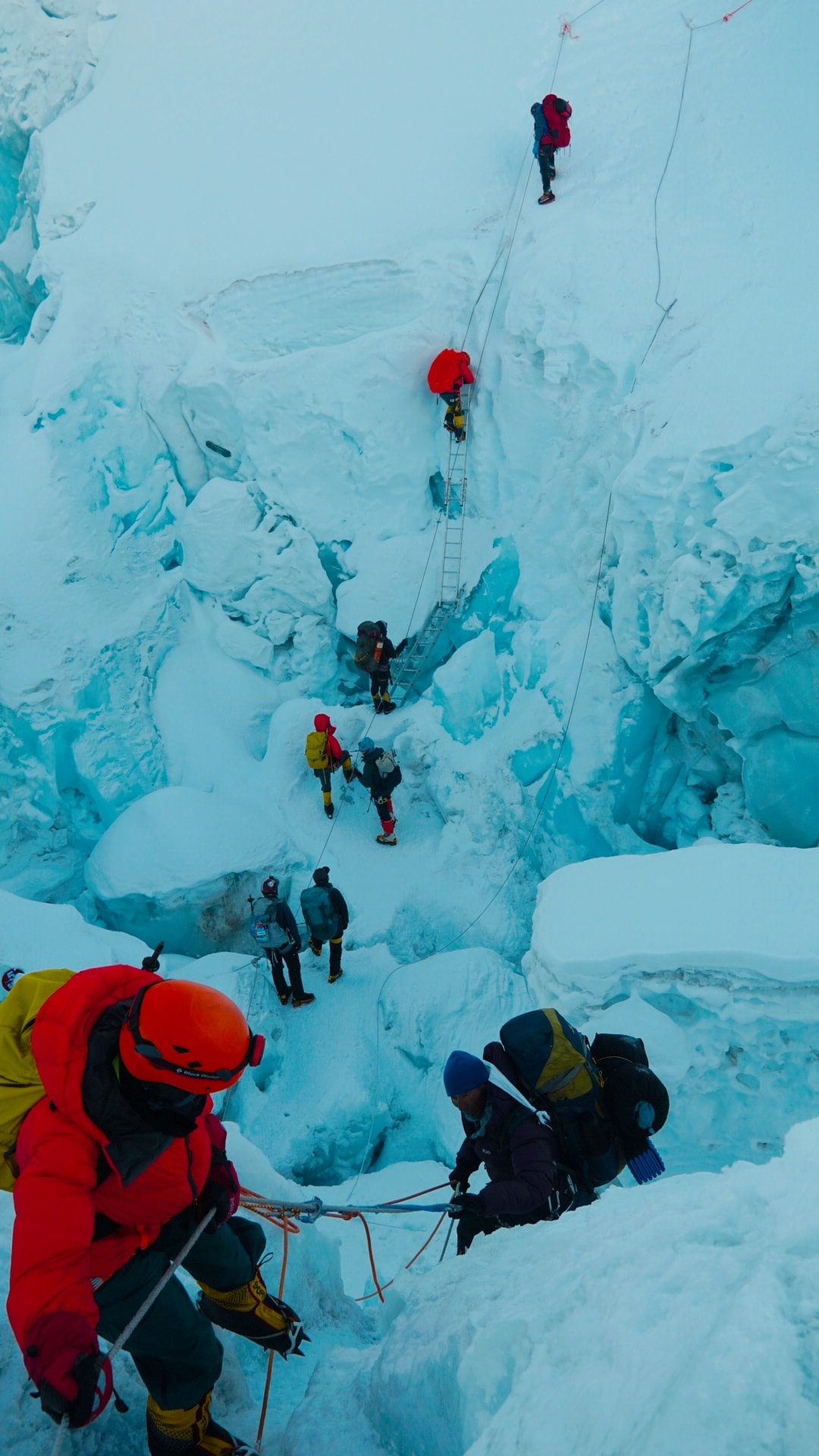 Потік людей на Еверест дуже великий. Хтось рухається вгору, а хтось вниз. По маршруту від Л2 до Л4 зустріли сотні шерпів з вантажами (особистими речами сходів, кисневими балонами та ін.). Наша акліматизація збіглася з першим кліматичним вікном, під час якого сходили на вершину Еверест сходили понад 150 туристів + шерпи. На жаль, 2 особи загинуло на спуску з вершини.