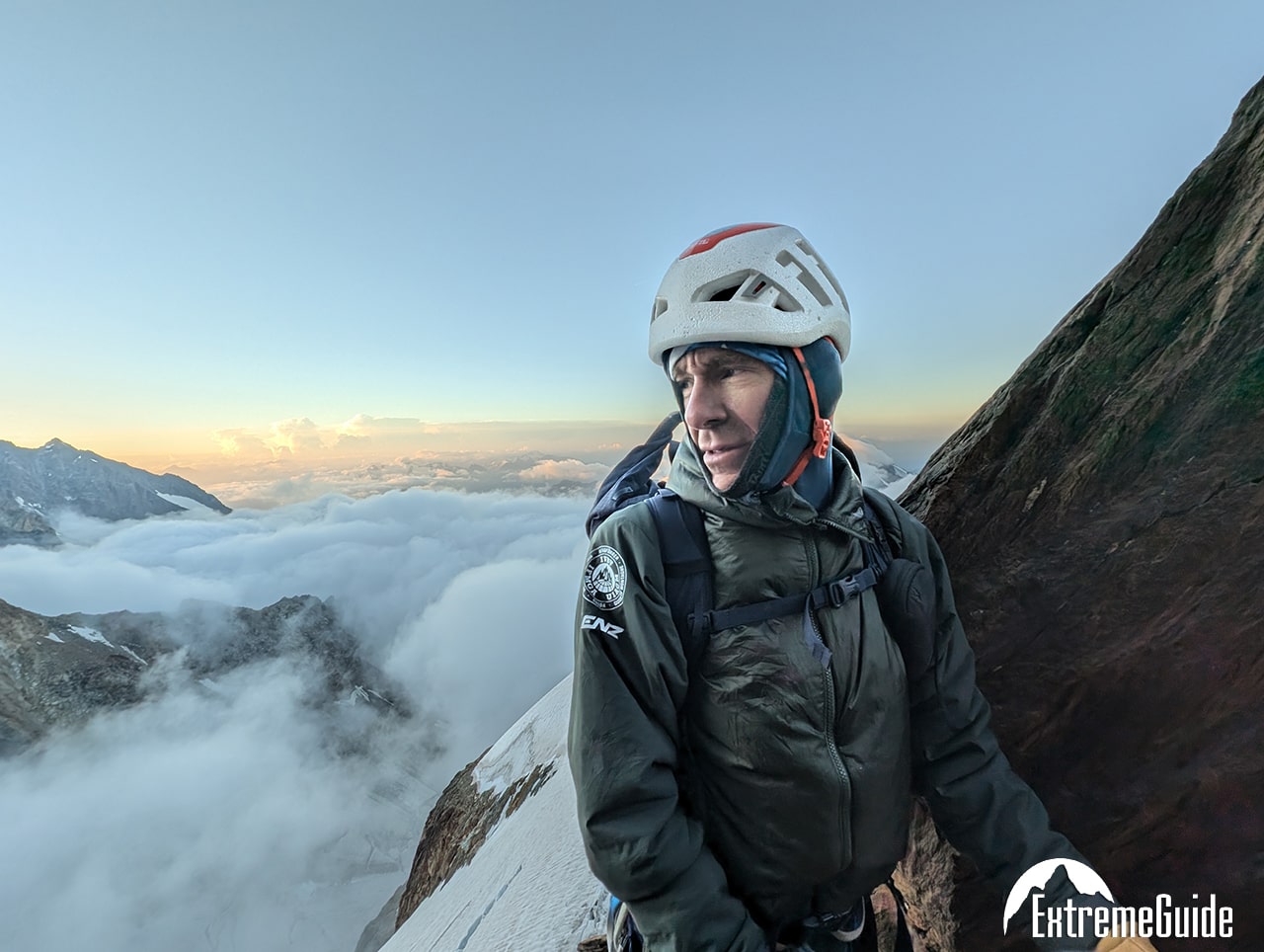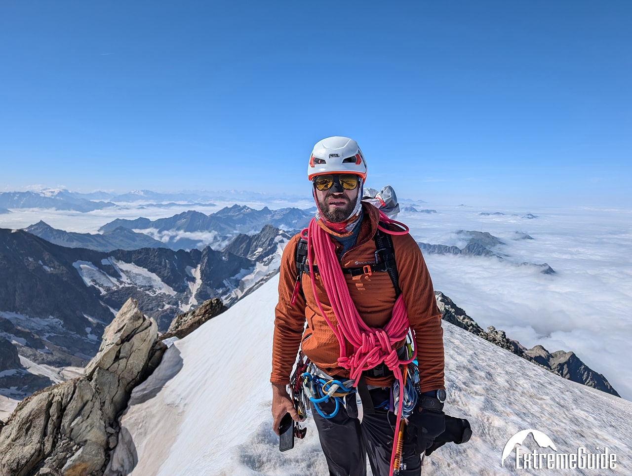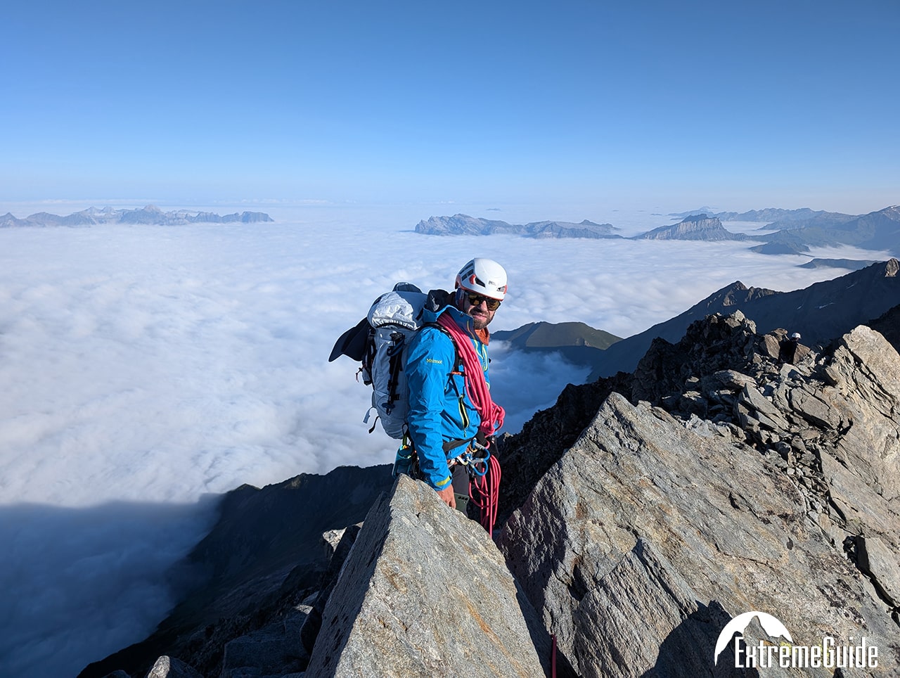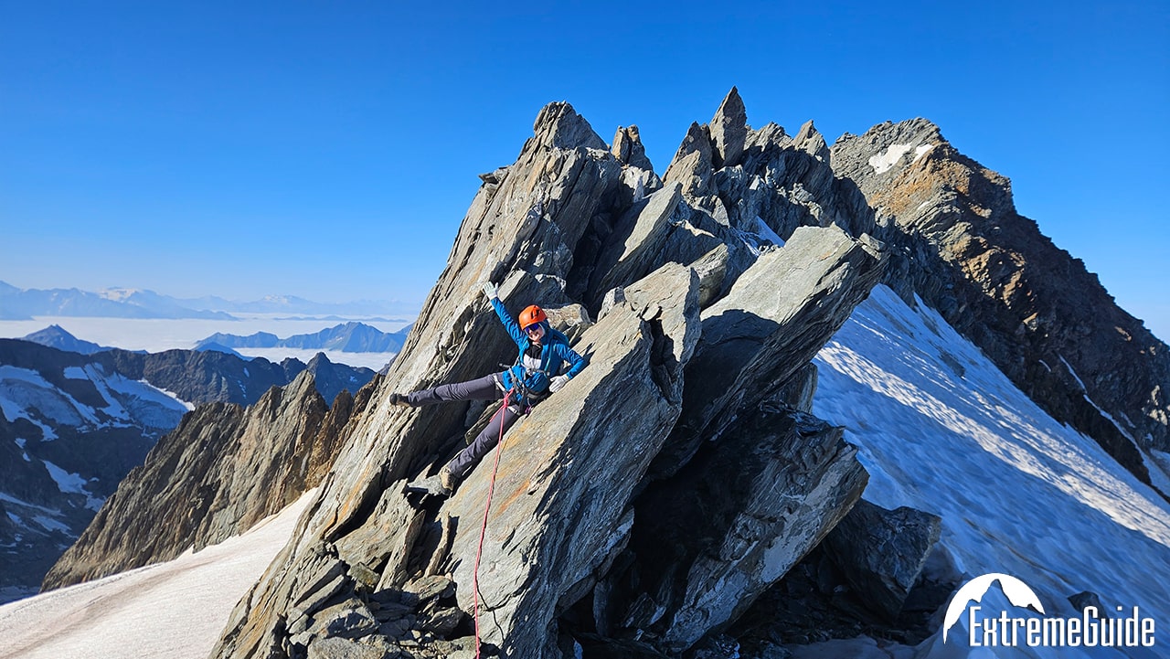 3й день ми піднялись на – Aiguille de Bionnassay 4,052 m – і по вузькому гребеню траверснули до г. Dôme du Goûter 4,304 m. Завжди дивився на цей вузький гребінь який з’єднує Bionnassay і Mont Blanc. І от нарешті пройшовся по ньому. На маршруті ми йшли одні.
