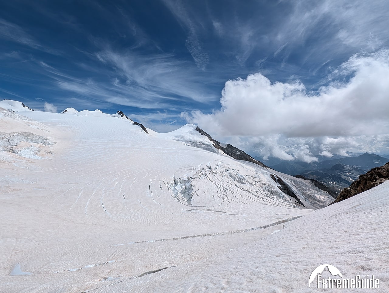 На наступний день ми піднялись на гребінь вершин Dômes de Miagе 3673 m (яких загалом 5) і заночували в притулку Durier.