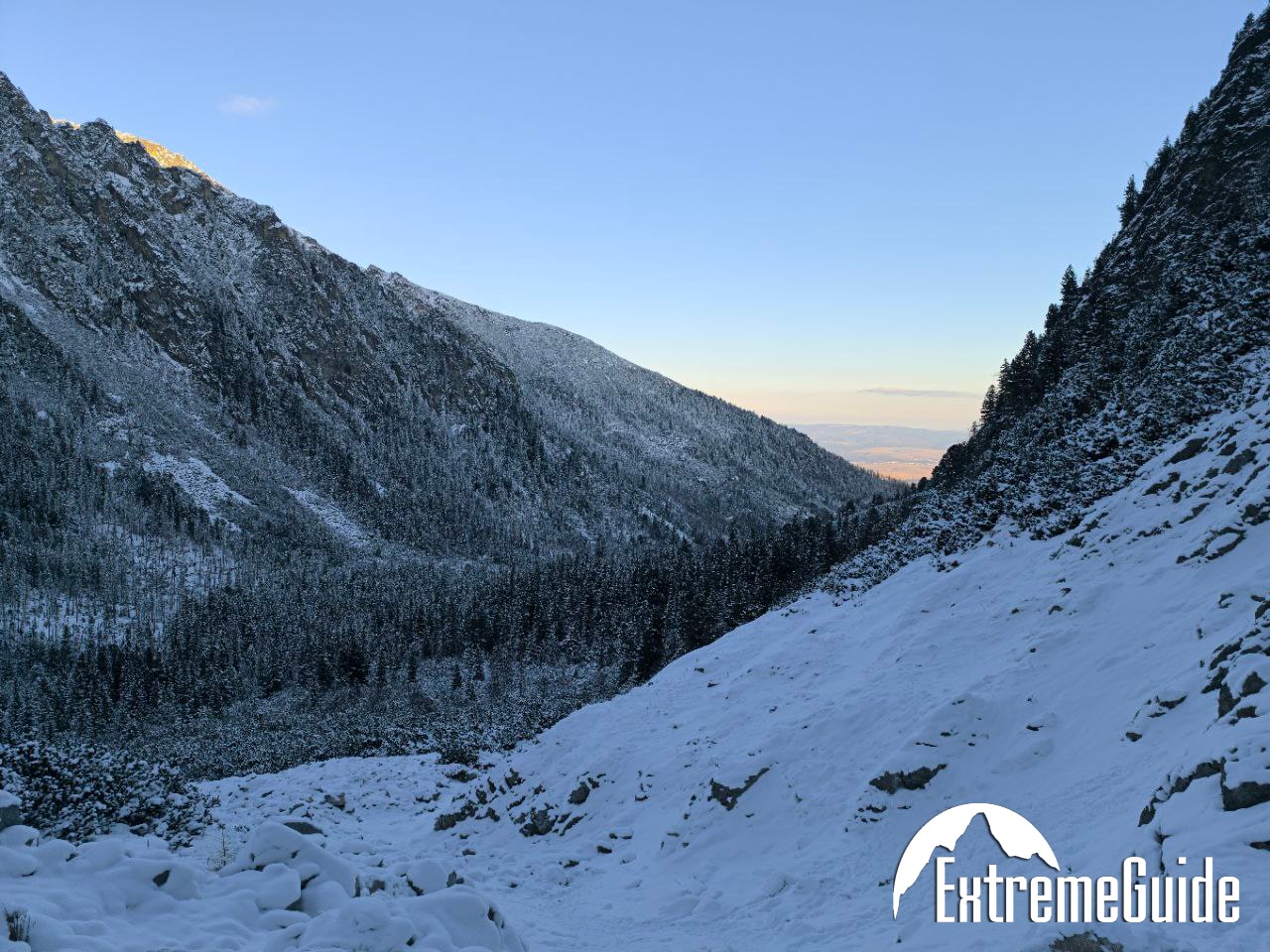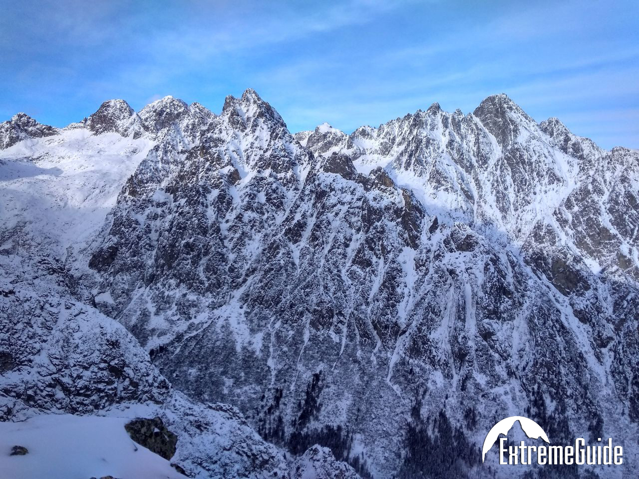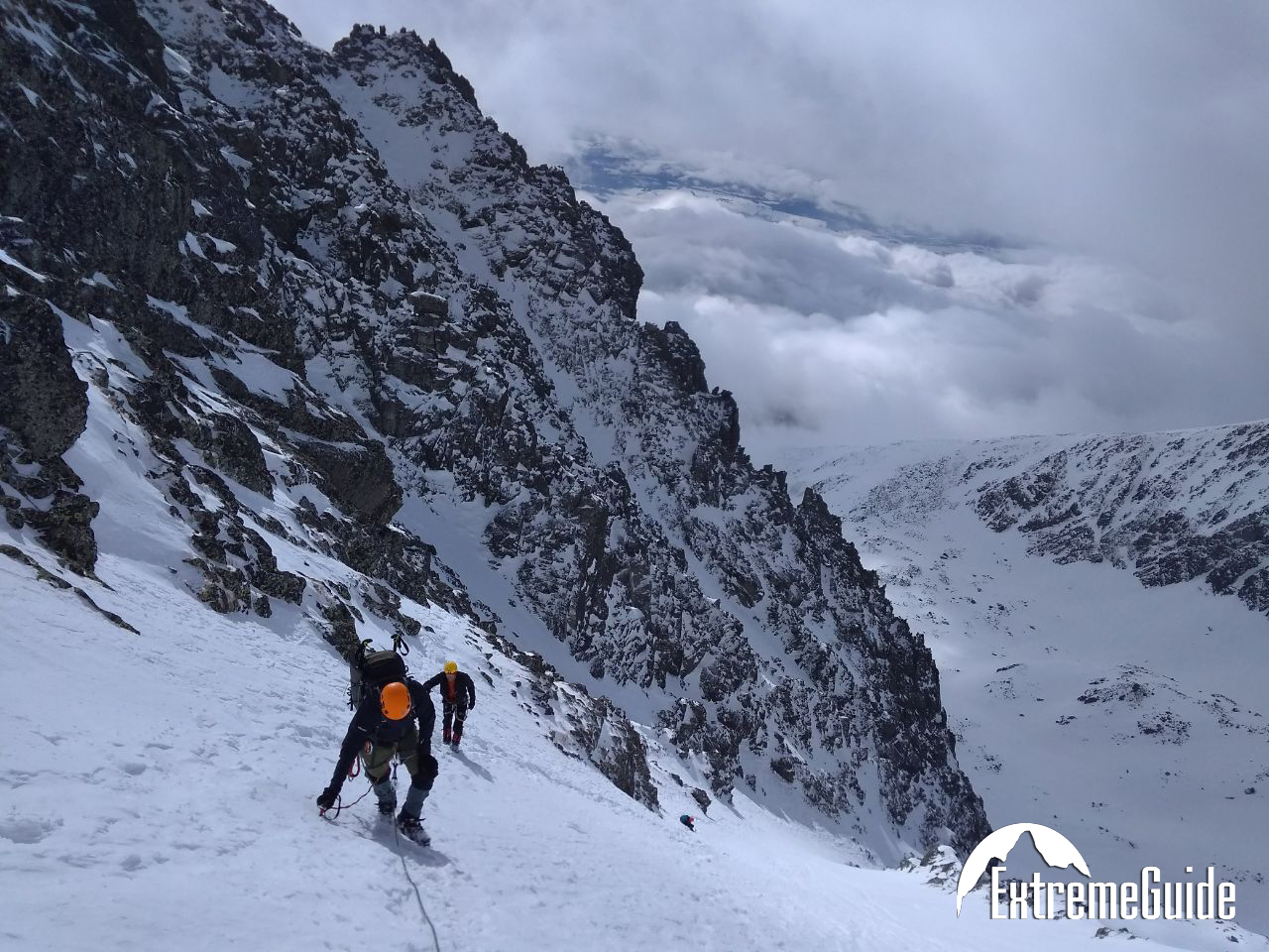 Зранку доїджаємо канаткою до станції Скальнате плесо, звідти година підходу до старту маршруту. Складність маршруту 2А (PD-). Гарний маршрут для тренування навичок пересування по снігу. Підйом по крутому сніжному кулуару, вихід на гребінь, рух до вершини по скельному гребеню.