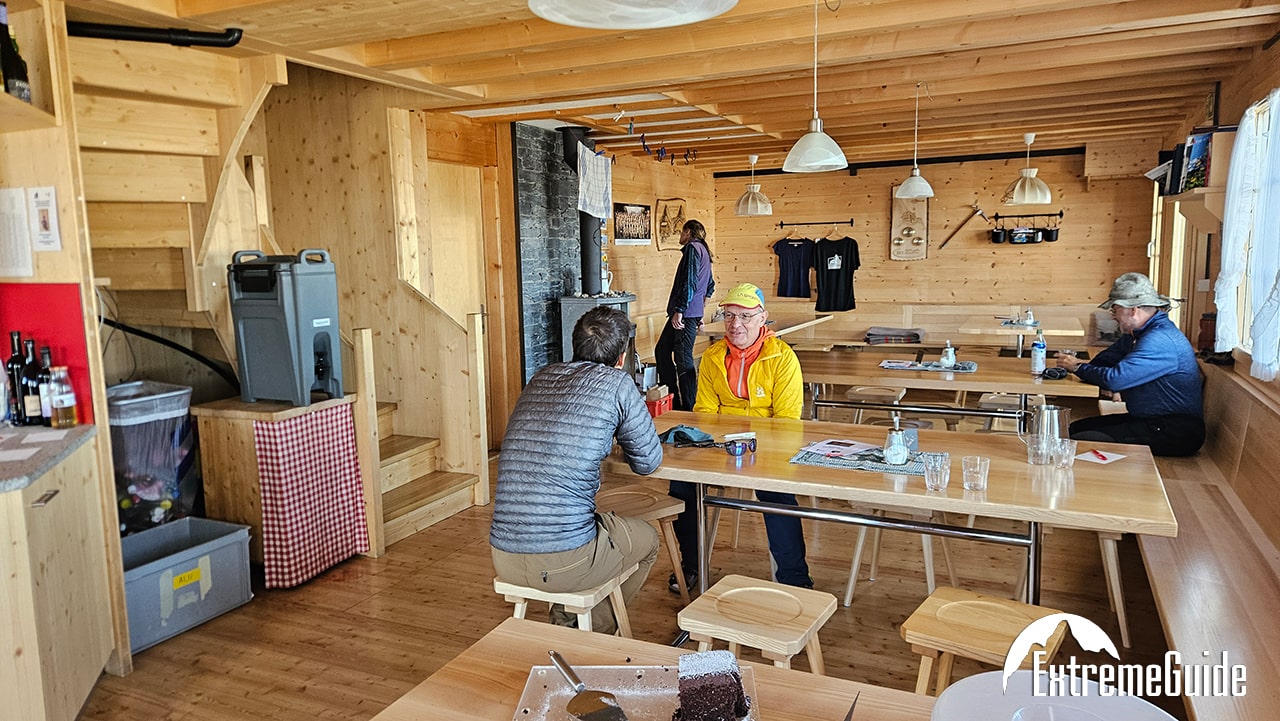 На горі ви зупинитеся в типовій альпійській гірській хатині. Де є велика їдальня та гуртожитки, зазвичай на 4–12 ліжок. Санітарні умови: загальний туалет, умивальники.