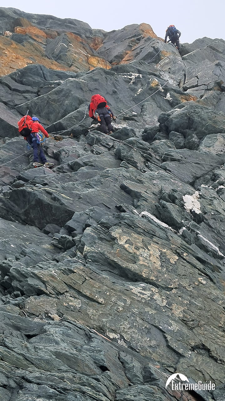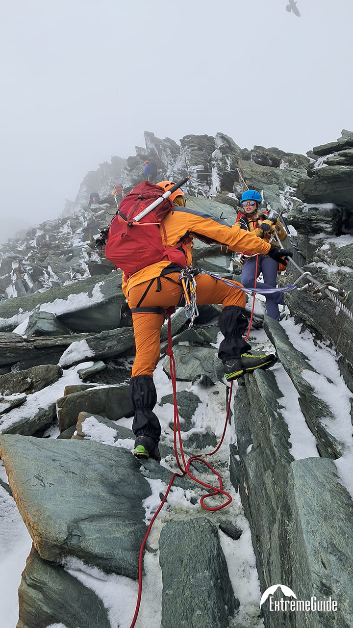 - Крутизна: Снігово-льодовий зліт перед гребенем (Glocknerleitl) має нахил до 40°. Якщо схил обледенілий, це вимагає ідеальної техніки роботи з льодорубом та кішками.