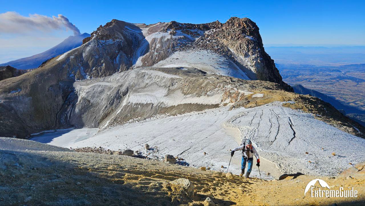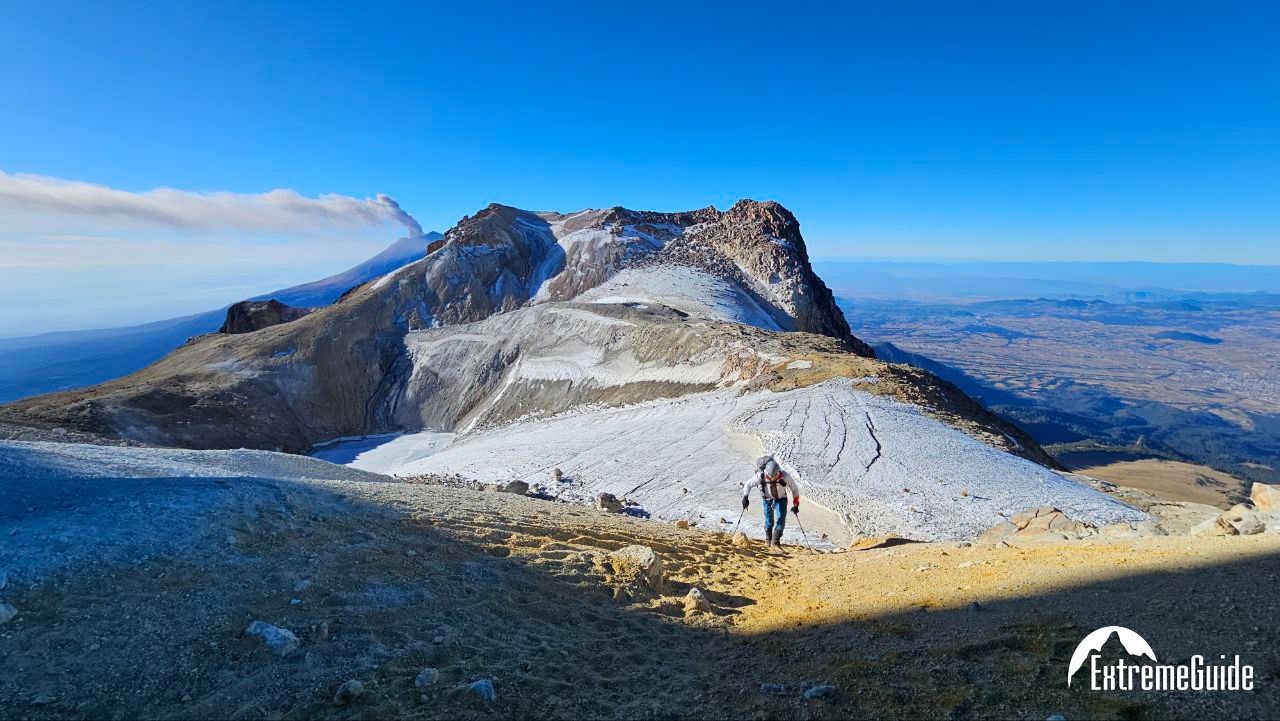 Ранній підйом. Вихід на гору не пізніше 2:00. Схід сонця ми зустрінемо під вершиною. Спуск у притулок «П’єдра Гранде», короткий відпочинок, поїмо і продовжимо спуск (вже машиною) до села Зоапан. Увечері урочиста вечеря на честь сходження на вулкан Орісаба. Ніч у гостьовому будинку. Характер підйому на Орісаба по сніжно-льодовому, фірновому схилі, місцями 35-45°. Підйом починається з висоти 4200 де знаходиться притулок П’єдра Гранде. Перша частина маршруту (1.5-2 години) проходить кам’янистою стежкою крутістю 20-30 градусів. Друга (1 -2 години) – по стежці зі снігом та льодом між камінням та скелями. Третя частина (близько 4 годин) проходить по відкритому льодовому полю без тріщин та будь-яких перешкод. У листопаді це зазвичай щільний сніг, починаючи з лютого буває крига. У середньому підйом триває 8-10 годин. Спуск – 3-4 години. Підйом проходить північним схилом, тому почуття холоду не залишає вас до самої вершини. Відстань 15 км, перепад ↑/↓ 1440м.