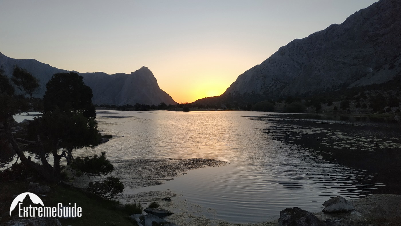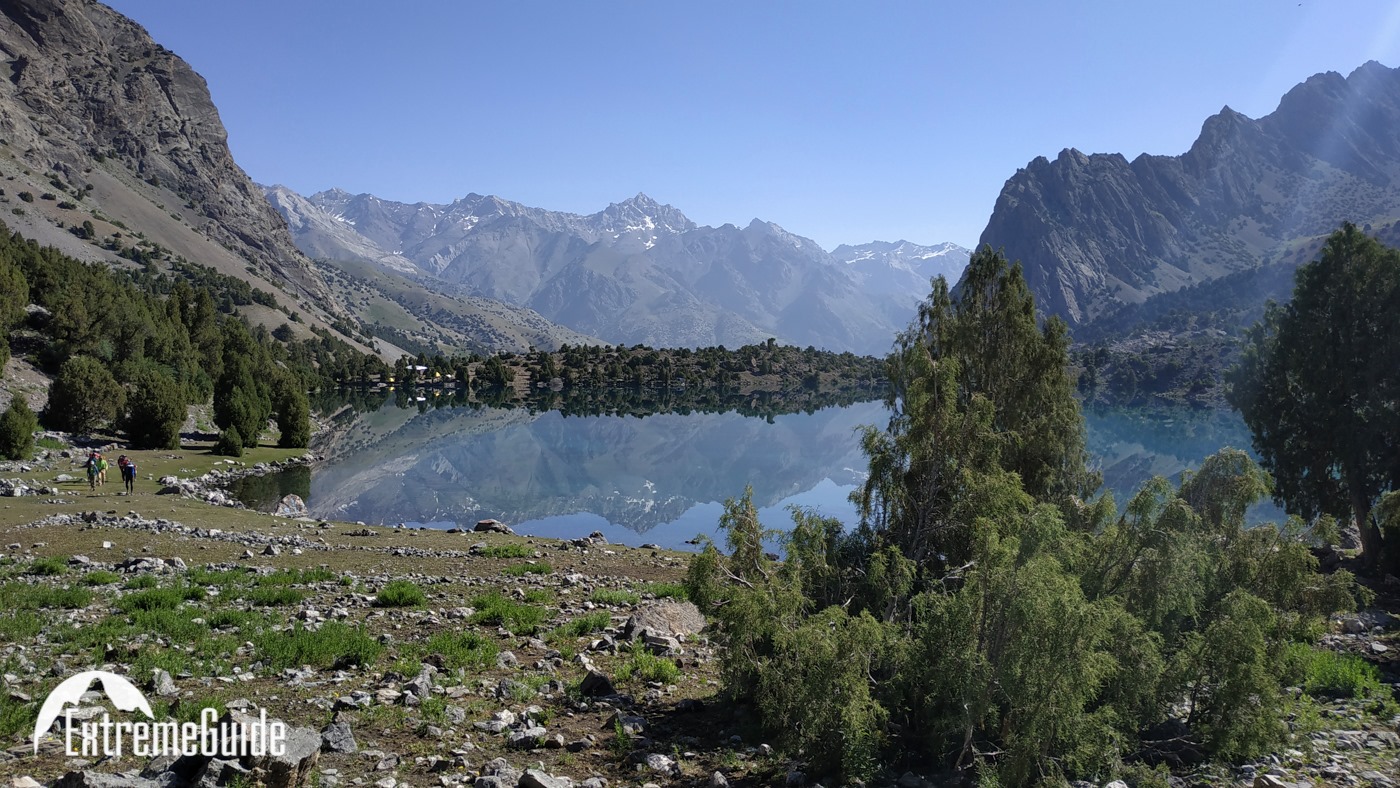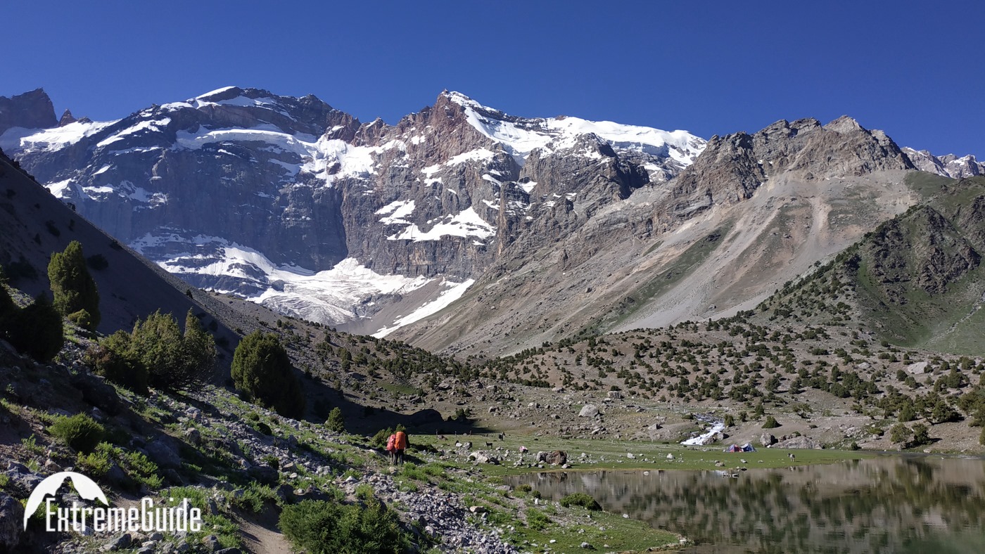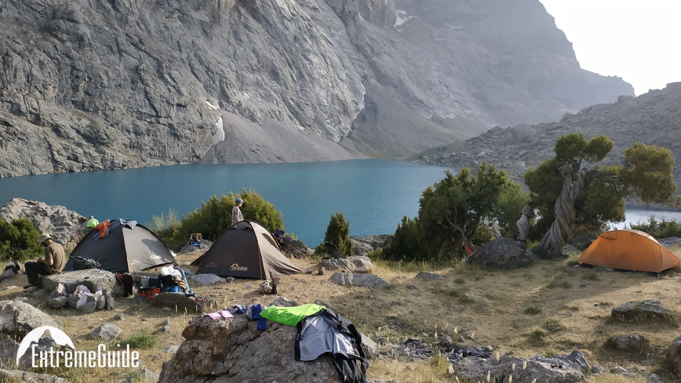 Сьогодні починаємо пішу частину. Йдемо до озера Бібіджанат. Це місце — справжня візитівка Фанських гір: бірюзова вода, а навколо гігантські скельні стіни, які так люблять альпіністи. В озерах, як у дзеркалі, відбиваються п’ятитисячники Марія та Міралі. Після обіду без рюкзаків прогуляємося до озера Душаха, прямо під стіни Міралі.