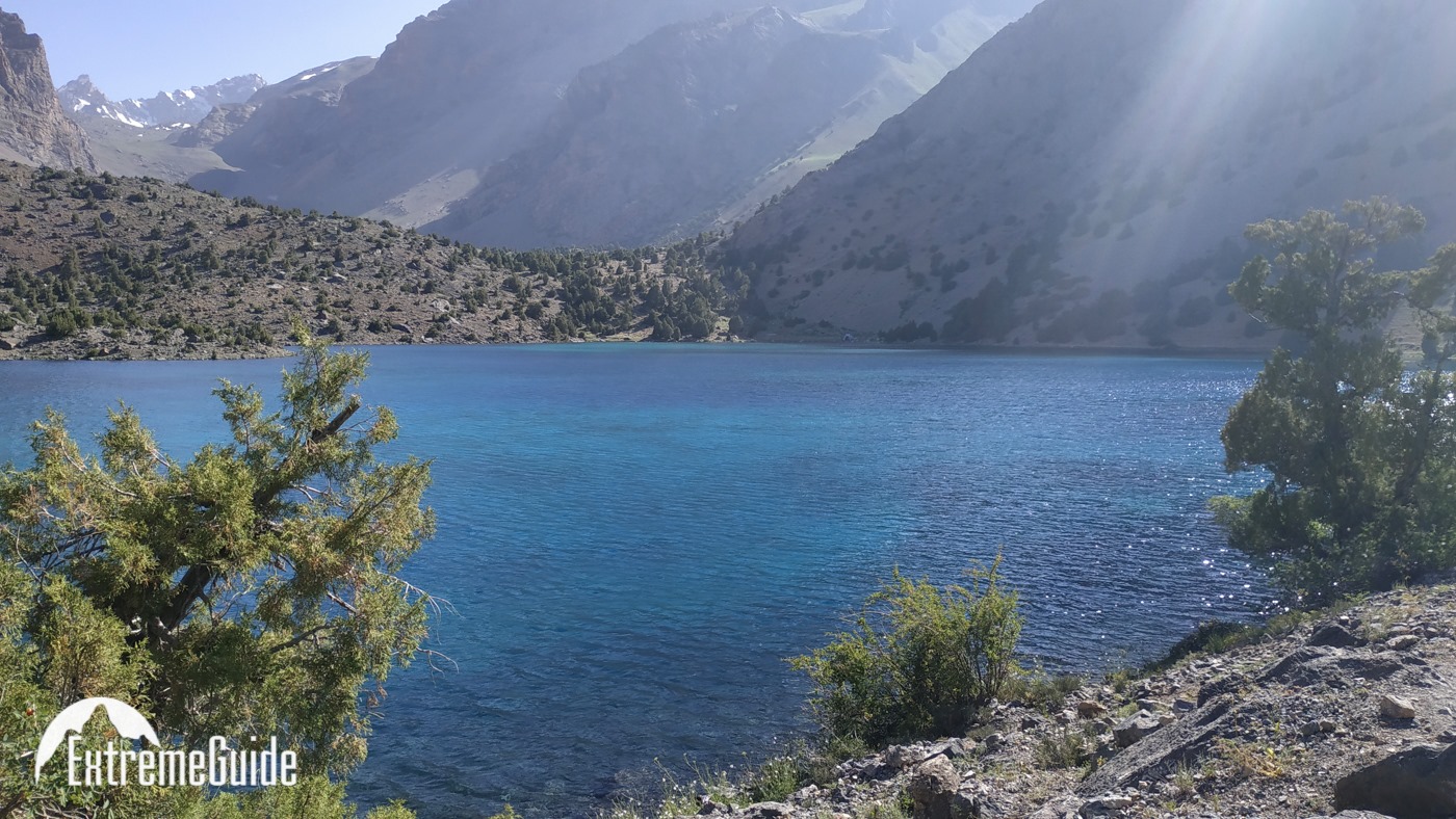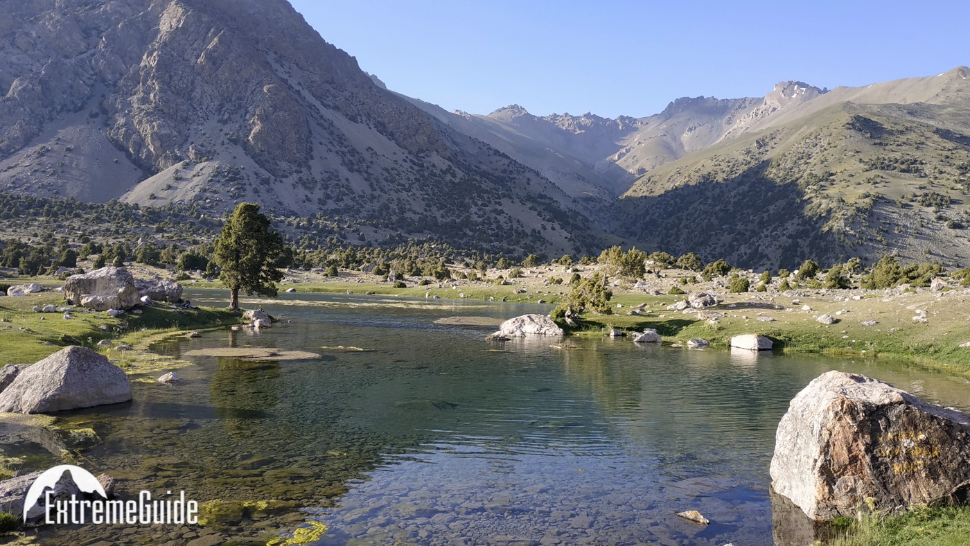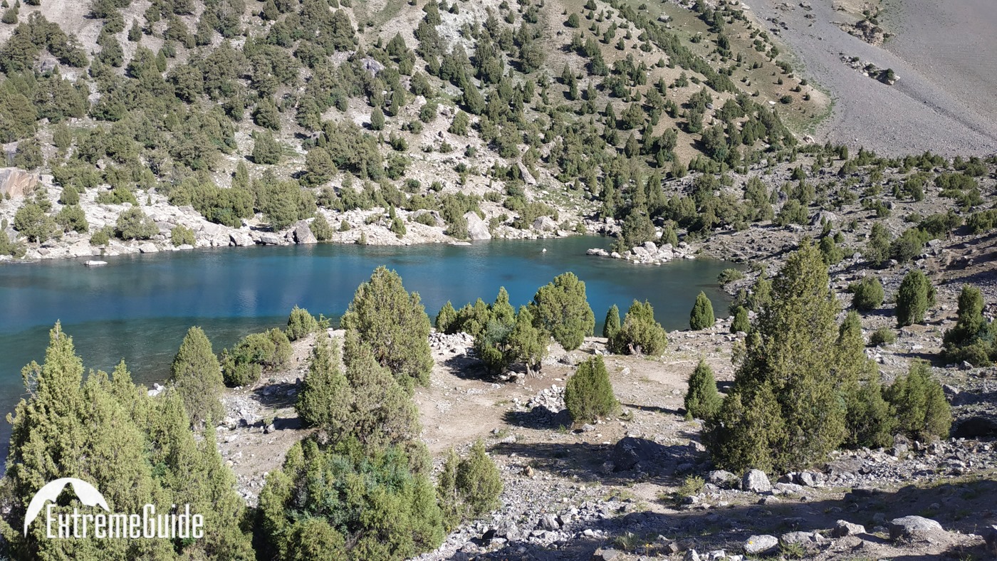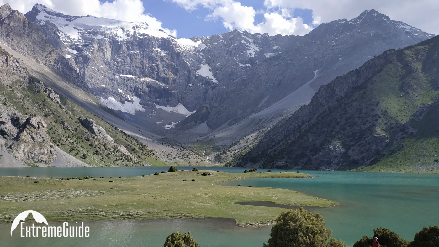 Сьогодні починаємо пішу частину. Йдемо до озера Бібіджанат. Це місце — справжня візитівка Фанських гір: бірюзова вода, а навколо гігантські скельні стіни, які так люблять альпіністи. В озерах, як у дзеркалі, відбиваються п’ятитисячники Марія та Міралі. Після обіду без рюкзаків прогуляємося до озера Душаха, прямо під стіни Міралі.