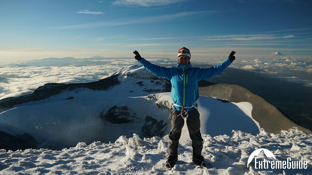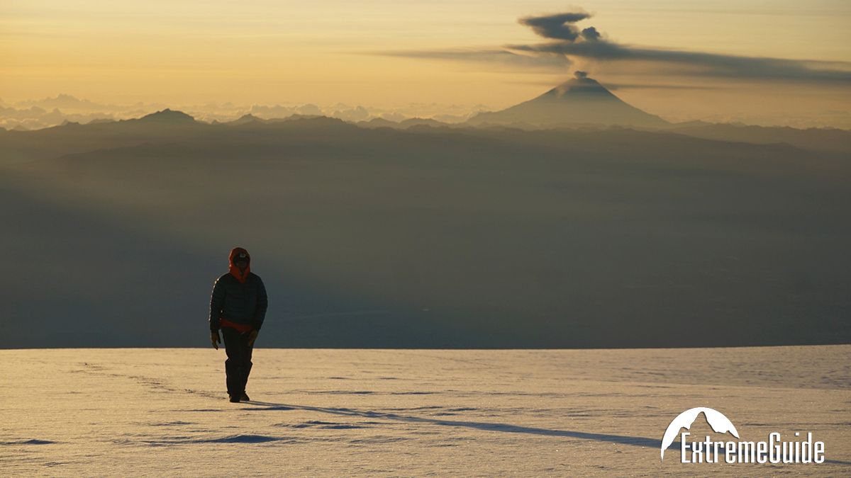 Підйом об 11 годині ночі та сходження на вершину вулкана Котопаксі (5897 м). Вихід близько 0:00. Сходження займає близько 8 години. У хорошу погоду з вершини проглядається гряда вулканів Еквадору, а сама вершина – це яскрава вирва кратера. Технічно підйом не складний, крім останніх 100 вертикальних метрів, де частина схилу має крутість 35-45 °. Частина підйому проходимо у зв’язках, одночасно. Місцями тріщини, обходимо кригопад.