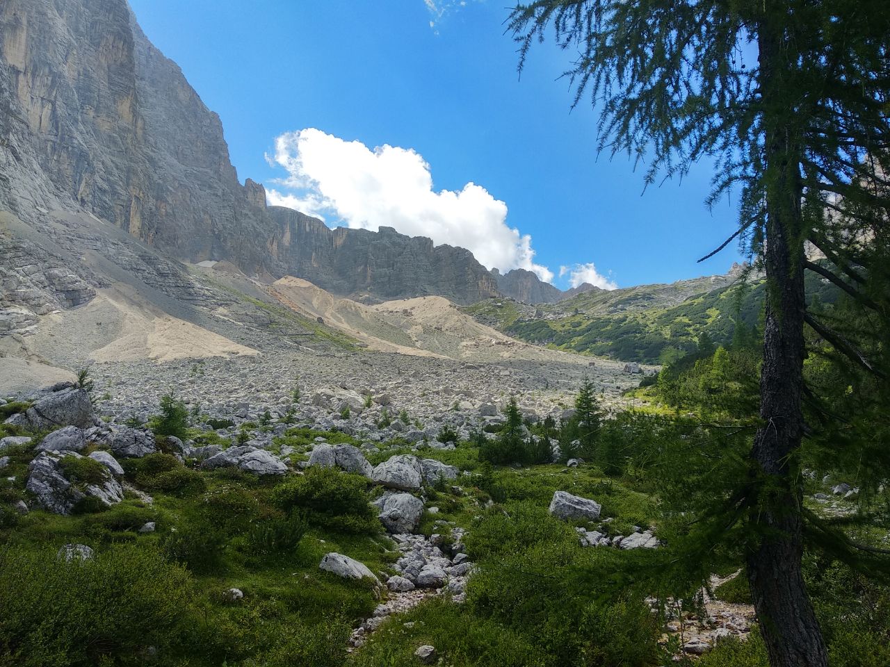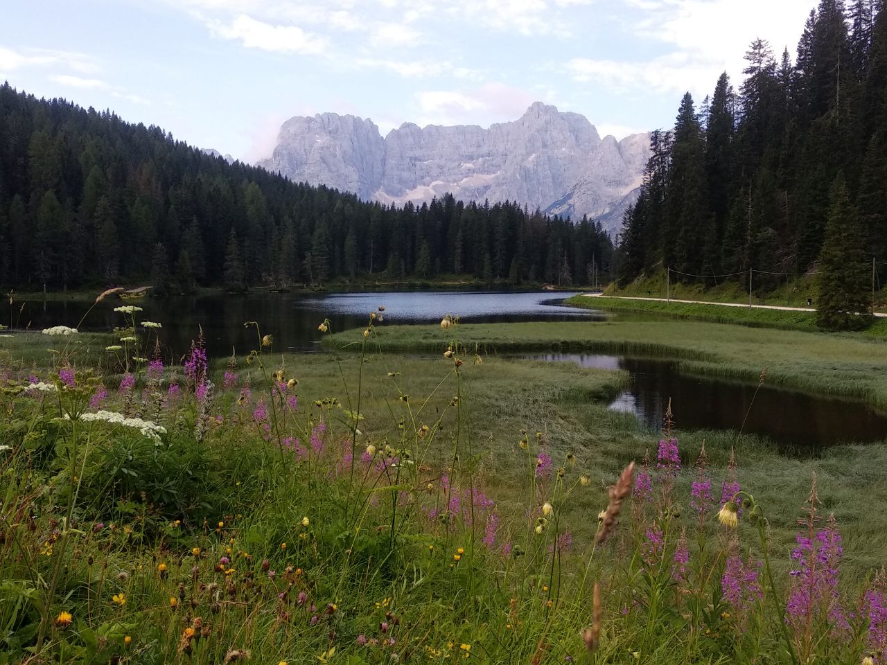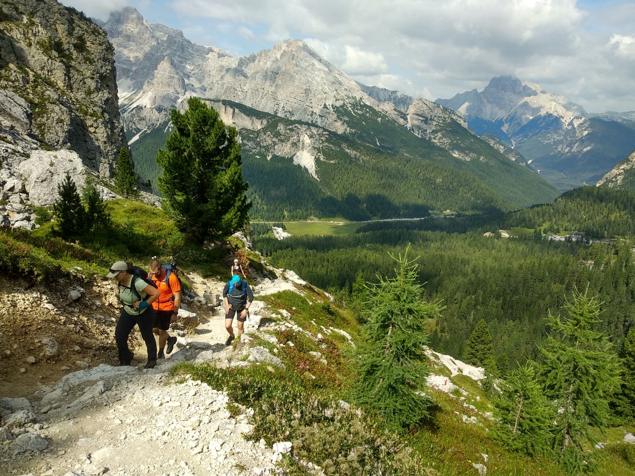 Початок активної частини походу. Сьогодні ми піднімемося нескладною стежкою до притулку Ili Fonda Savio, пройдемо мальовничим лісом з ялинок і модрин. Притулок знаходиться на перевалі, звідки відкривається незабутня панорама на масив Кадіні та Лаваредо. Повернення до кемпінгу через перевал Римб’янка.